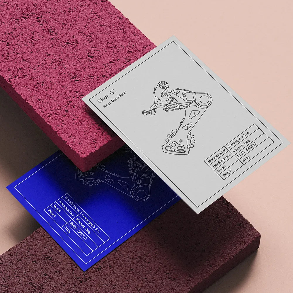 Für alle, die das besondere Schaltgefühl von Campagnolo Ekar lieben. Dieser Blueprint zeigt dein Gravel-Schaltwerk als minimalistisches technisches Wandbild.