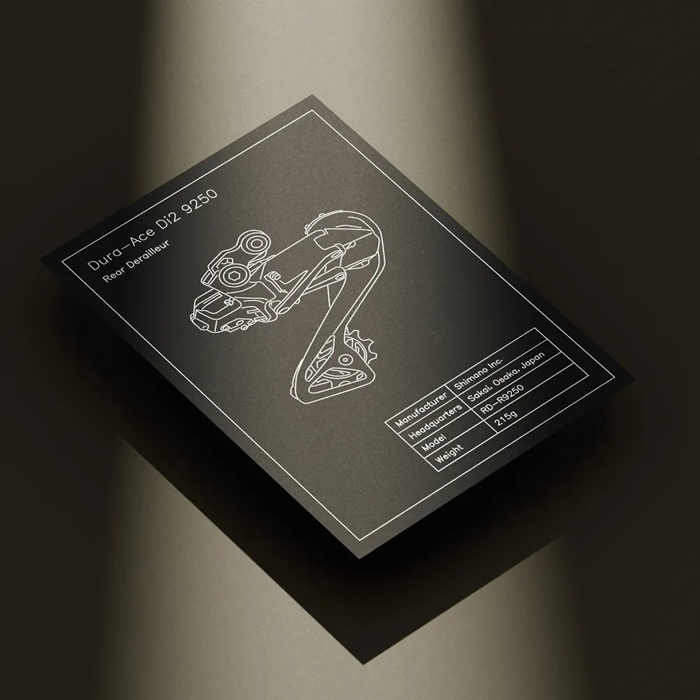 Ob als Geschenk für Rennrad-Fans, als Deko für dein Zuhause oder als Statement im Büro: Der Shimano Road Schaltwerk Blueprint verbindet Technik, Design und deine Liebe zum Radfahren.